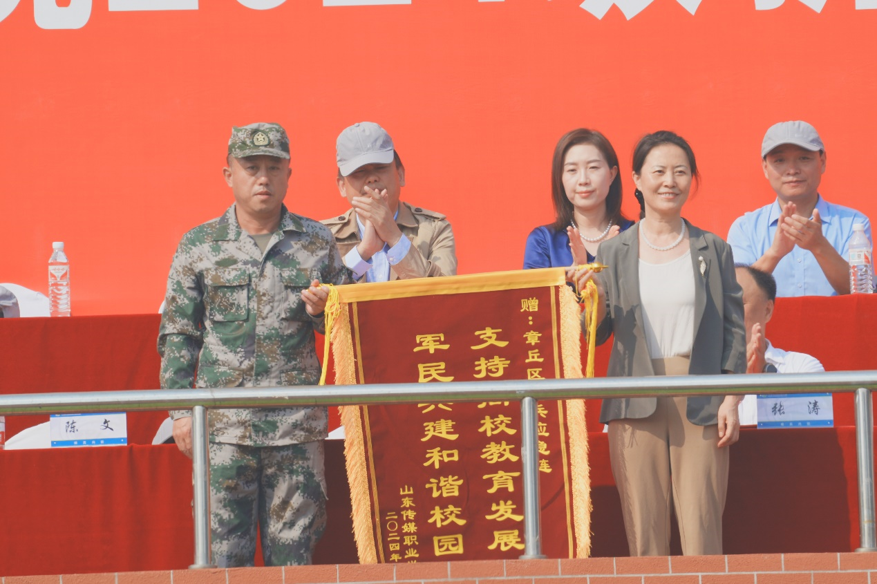 党委书记孙茜芸代表学院为承训教官代表赠送锦旗。