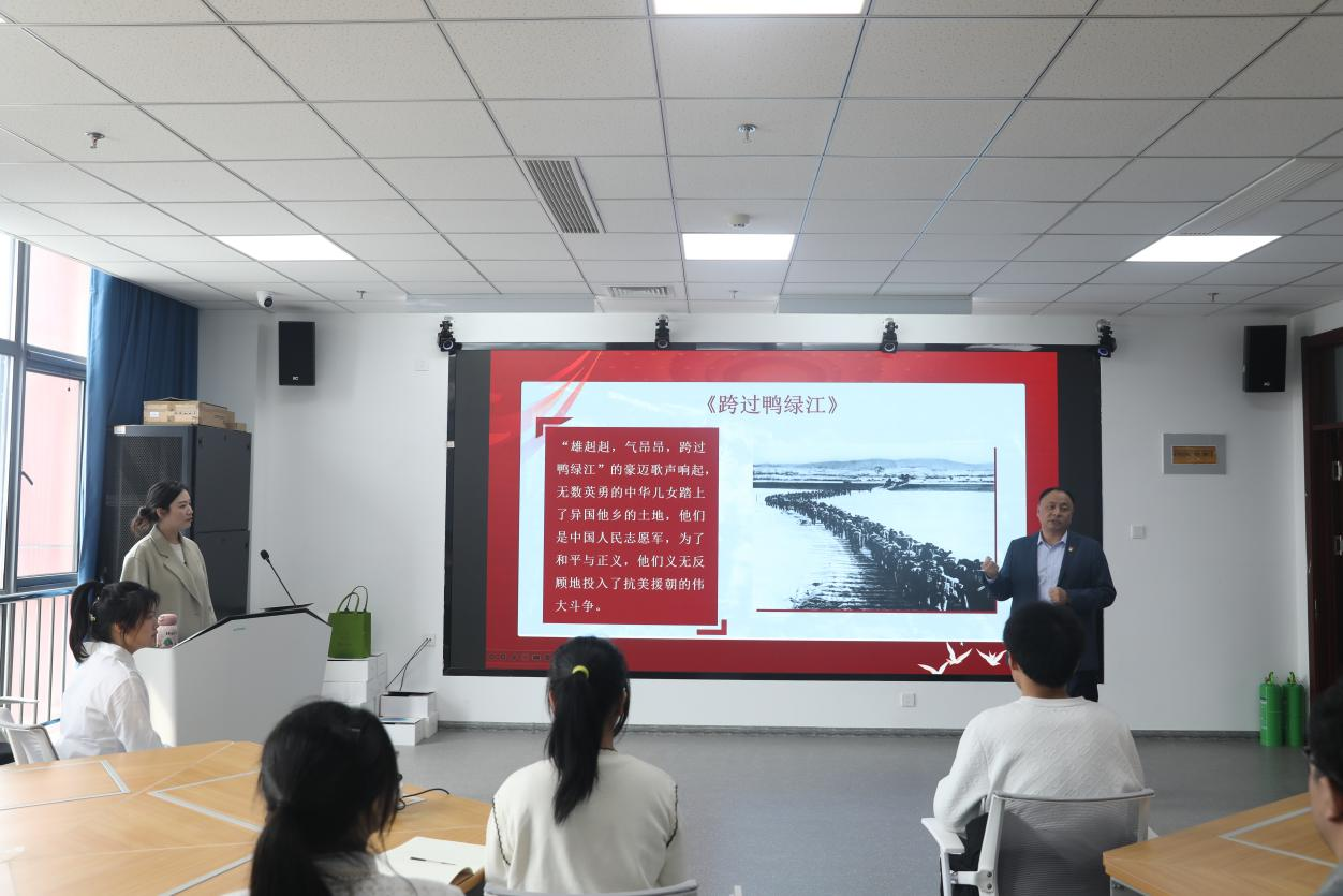 张涛认真聆听同学们分享,并与同学们进行亲切的交流。张涛指出,《觉醒年代》像火种,点燃了信仰的火焰;《伟大的转折》是旗帜,指明了逆境中正确的方向;《跨过鸭绿江》像脊梁,撑起了保家卫国的信念,这三部作品串联起中华民族的改革发展史,同学们应当认真学习体悟其中的红色精神。张涛在现场还讲述了抗美援朝战争中的作战方法和历史故事,给同学们上了一堂生动的党史课。
