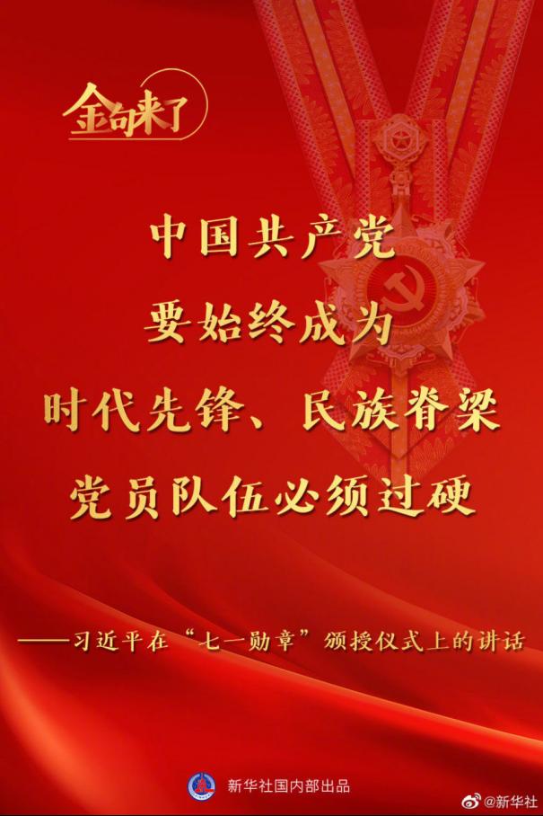 【习近平:将党内最高荣誉授予为党和人民作出杰出贡献的共产党员】习近平说,今天,在庆祝中国共产党成立一百周年之际,我们在这里隆重举行仪式,将党内最高荣誉授予为党和人民作出杰出贡献的共产党员。